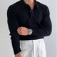 For a decidedly sophisticated approach to refined attire, this men’s polo is a must. Featuring a buttoned collar, it is detailed with vertical ribbing to elevate your casual look with sumptuous texture. The classic fit with long sleeves is all about complementing your discerning sense of style.